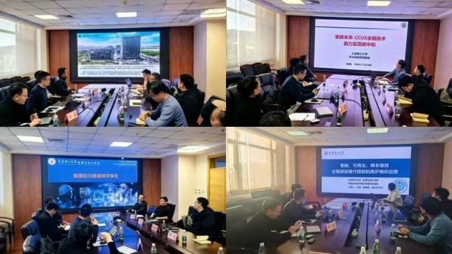 科研概况。张毅、王储、连志强、耿铁依次介绍了CCUS全链技术、生物质替代煤粉、风电装备智能运维、风浪联合深水实验室建设进度。