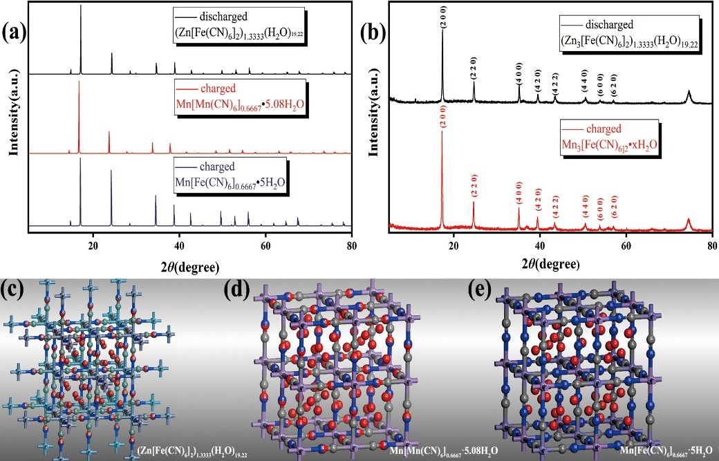 与传统水系锌离子电池相比,正极活性物质增加了普鲁士蓝,且发现普鲁士蓝与二氧化锰在电池充放电过程中时发生反应转变为铁氰化物Zn3 [Fe(CN)6] 2Mn3 [Fe(CN)6] 2 ,在该电池充放电过程中可提供稳定的330 mAh/g充放电容量。此类生成物有较高稳定性使得电池拥有高性能、高稳定性及长寿命的特点,且制造成本相对较低,未来有望在大规模低成本高效能储能、动力电源系统等领域得到广泛应用。